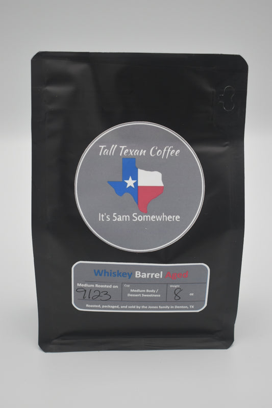 Our house special coffee takes freshly emptied Texas whiskey barrels from a local distillery and we age our unroasted coffee beans until they take on the unique characterstics found in the charred oak barrels. We also offer several other coffees from around the world, providing unique flavor profiles. You'll receive your coffee within DAYS of roasting, providing you with the freshest coffee you'll ever drink.